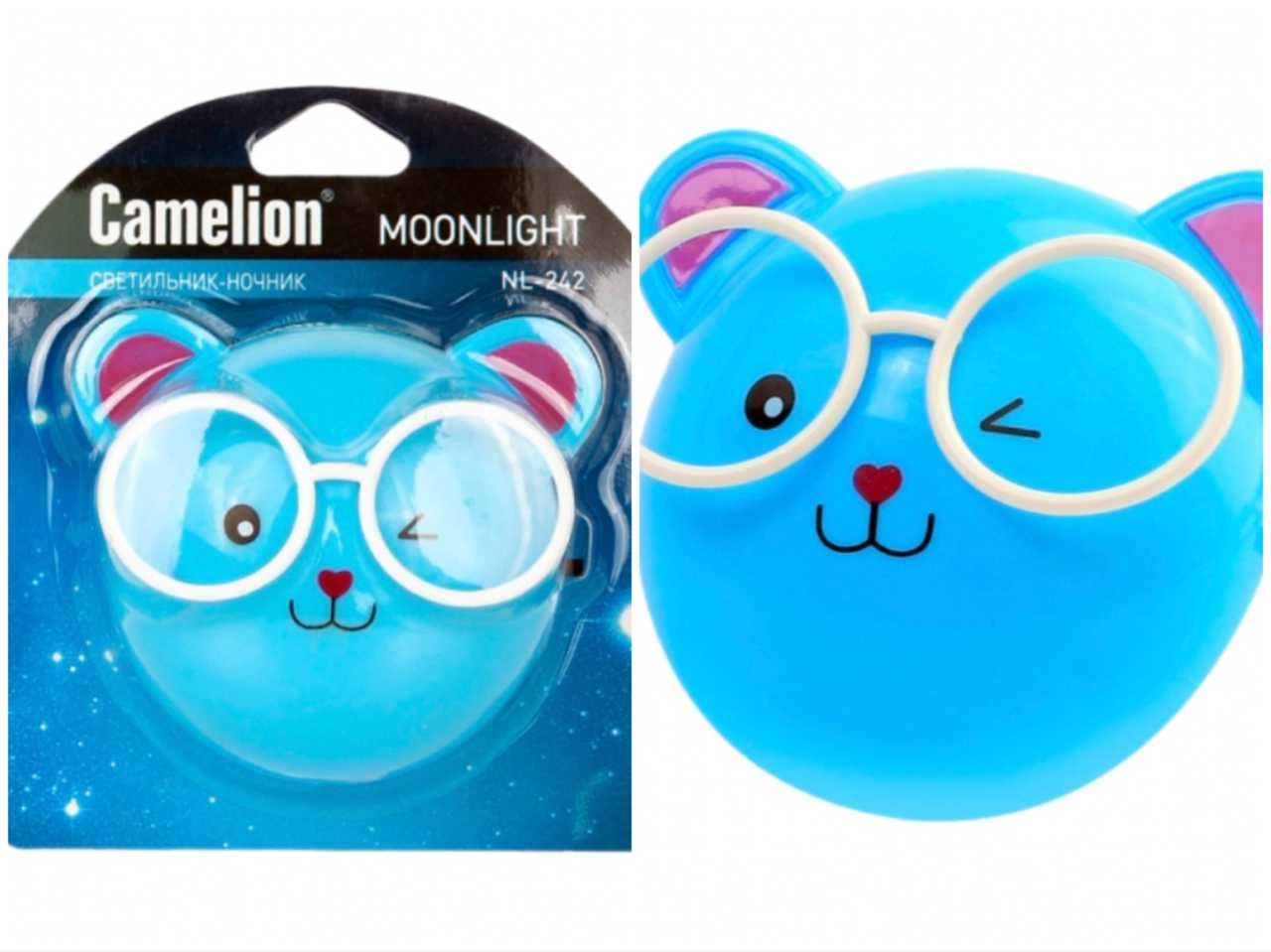 Ночник Camelion NL-234 "Медведи очкарики" 220V 0,5W в розетку синий 1/24/72шт/уп