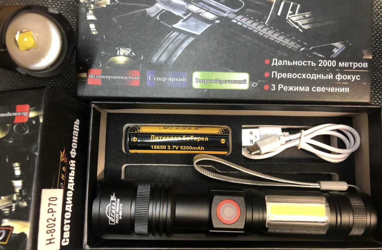 Фонарь подствол H-186-P50 + кнопка на шнурке 1*18650+С/АЗУ+касета 3*ААА ФОТО