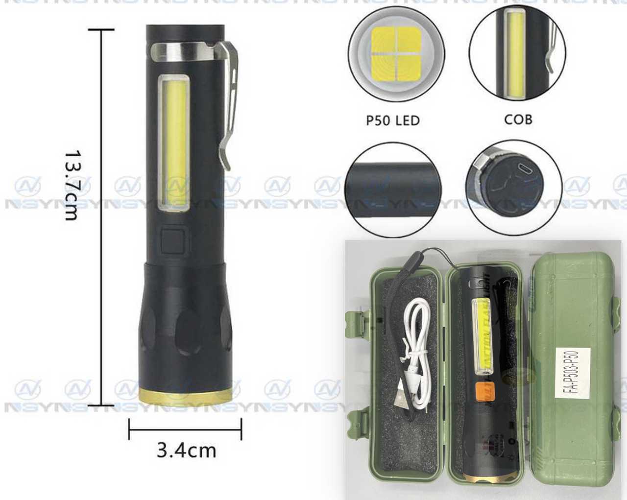 Фонарь ручн. H-717M+COB сбоку "NATO" (встр.ак.+шн.Type-C+ZOOMвыдвижной)