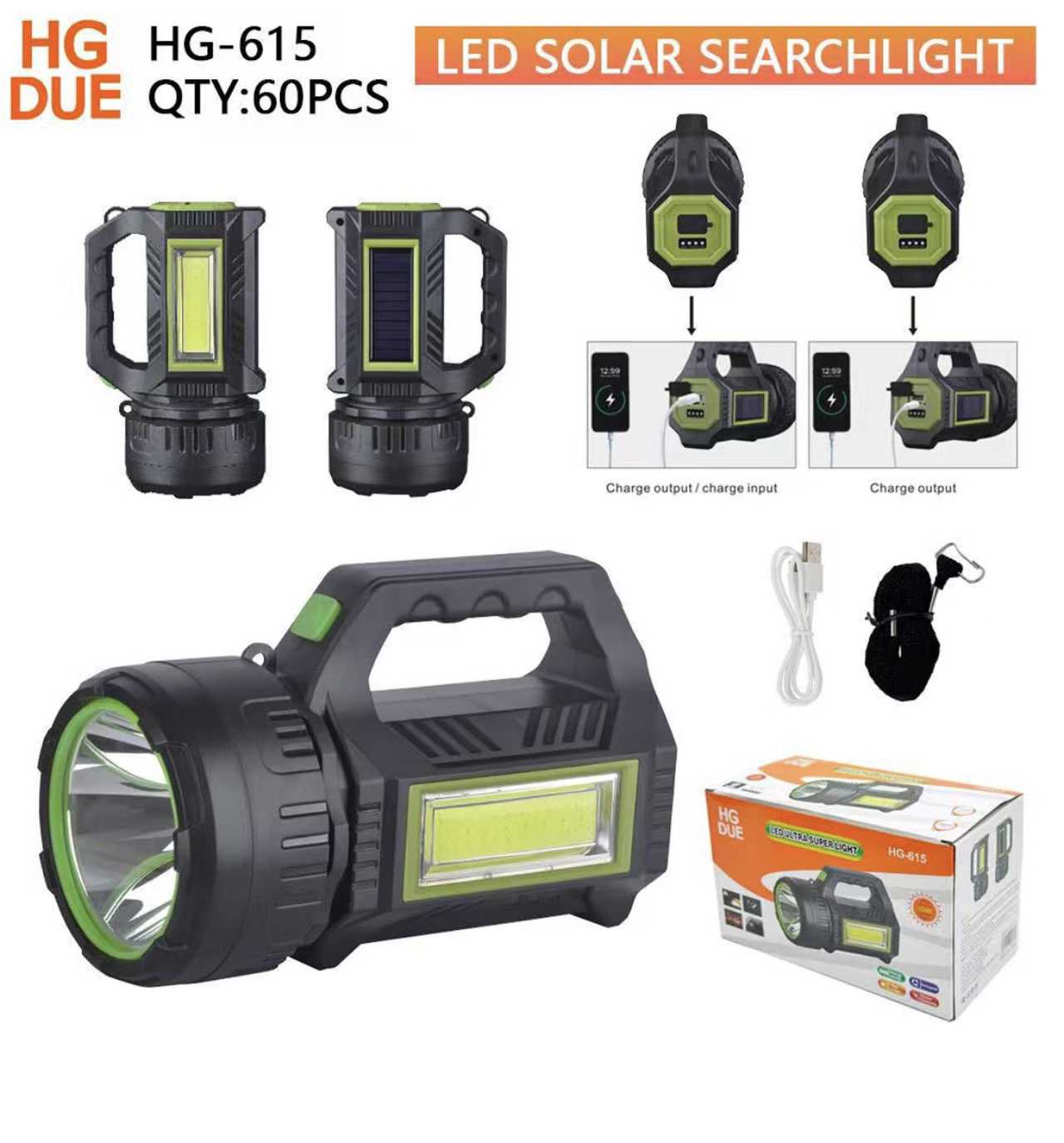 Фонарь ручной АККУМ. HG-615 (1*Led+COBсбоку+SolarPanel+шн.Type-C) Y1727
