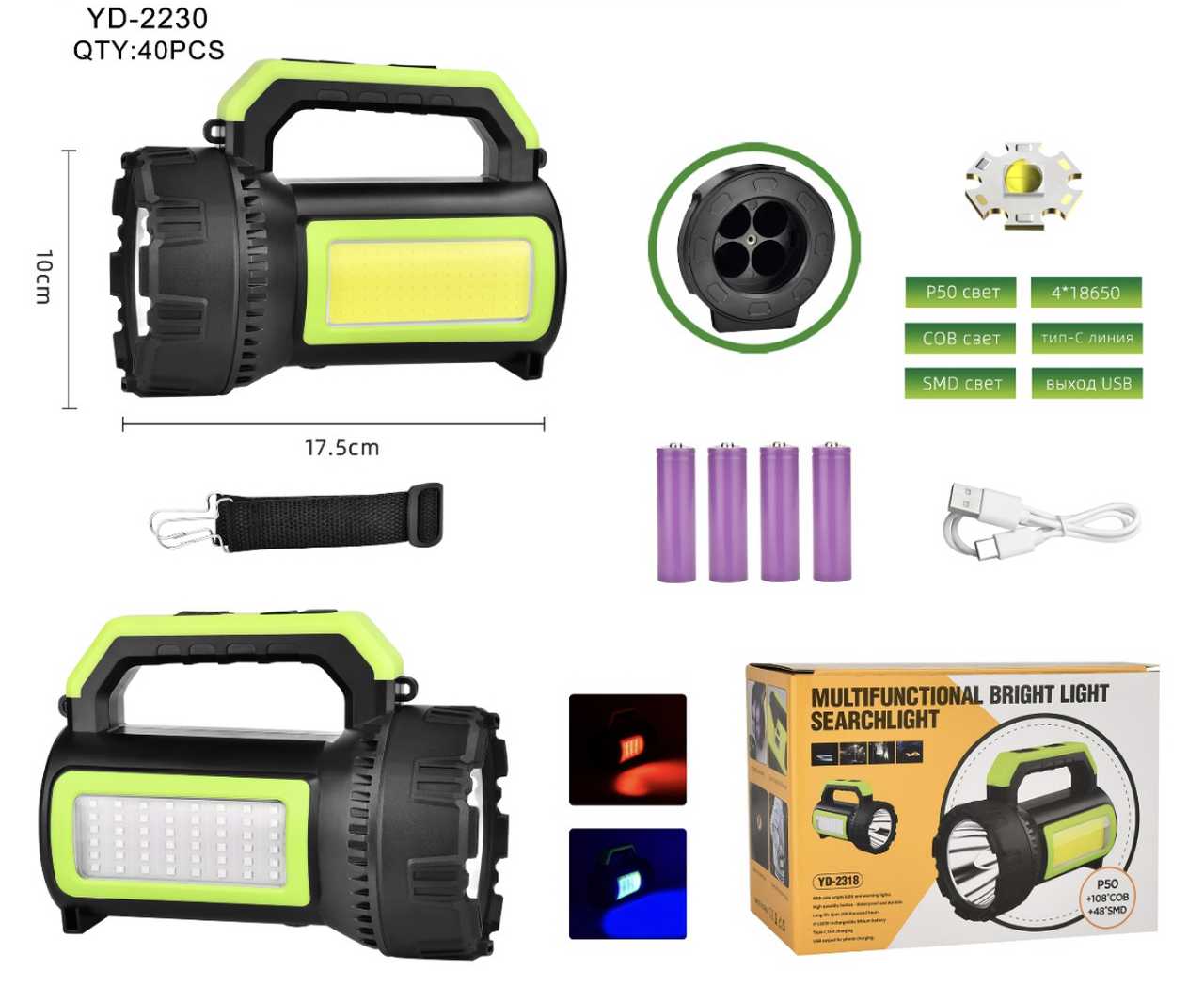 Фонарь ручной АККУМ. YD-2298_JY-2618_HY-T40 5WLED+сбоку_COB
