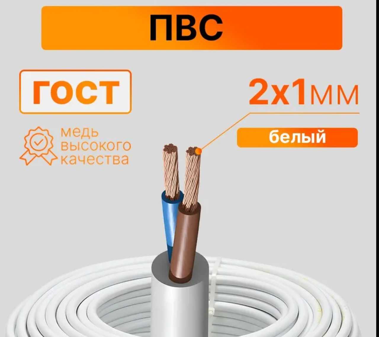 ПВСн 2х1мм² белый ГОСТ ~200м/бухте