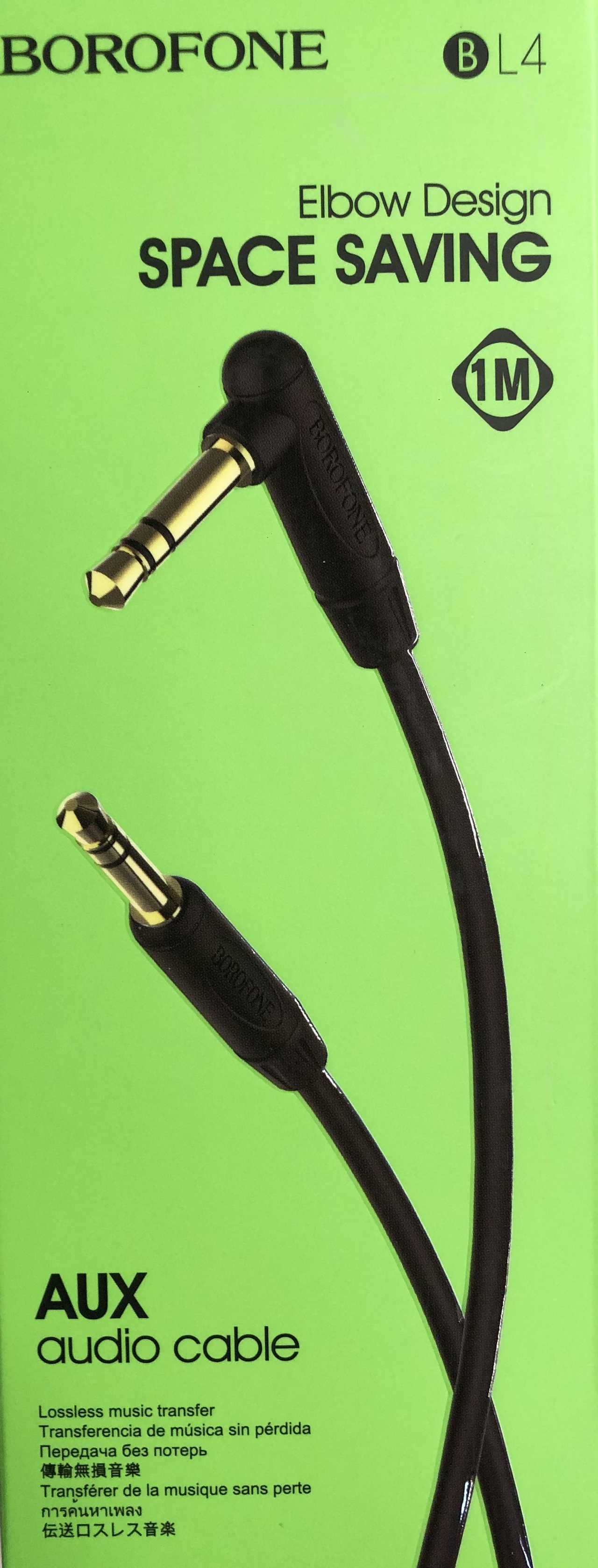 Шнур AUX Borofone BL10_BL4 с одним угловым 1м черный