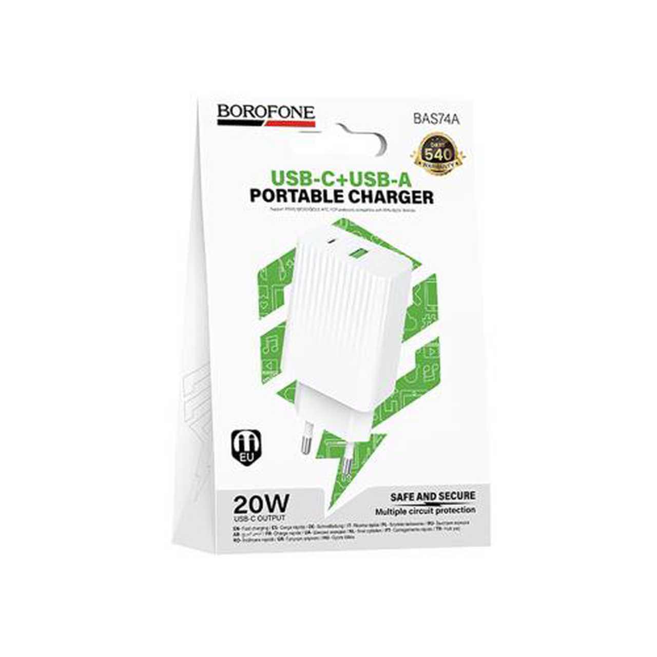 СЗУ 1+1 (1xUSB+1хPD type-c) BAS74A Borofone PD20W+QC3.0 картон Б/Г